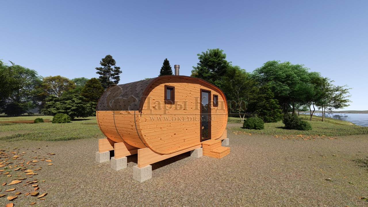 Баня-бочка овальная из кедра 6х2,2 метра Овальная баня-бочка из кедра просторная и вместительная. Имеет два отделения: раздевалку, которую можно использовать как комнату отдыха, и парилку. Для удобства пользования раздевалка оснащена лавочкой, полкой и вешалкой из кедра. В парильном отделении располагается печь и двухуровневый открытый полок. Для установки такой модели не требуется полноценный фундамент, поэтому при необходимости ее можно перенести на другое место. Так же баню-бочку можно укомплектовать верандой со скамейками, козырьком и печью с внешней загрузкой, благодаря которой весь мусор после топки останется на улице. Древесина кедра насыщена эфирными маслами и фитонцидами, которые активируются при воздействии температур. Таким образом, парение в каркаско-щитовых банях из кедра вдвойне полезно.