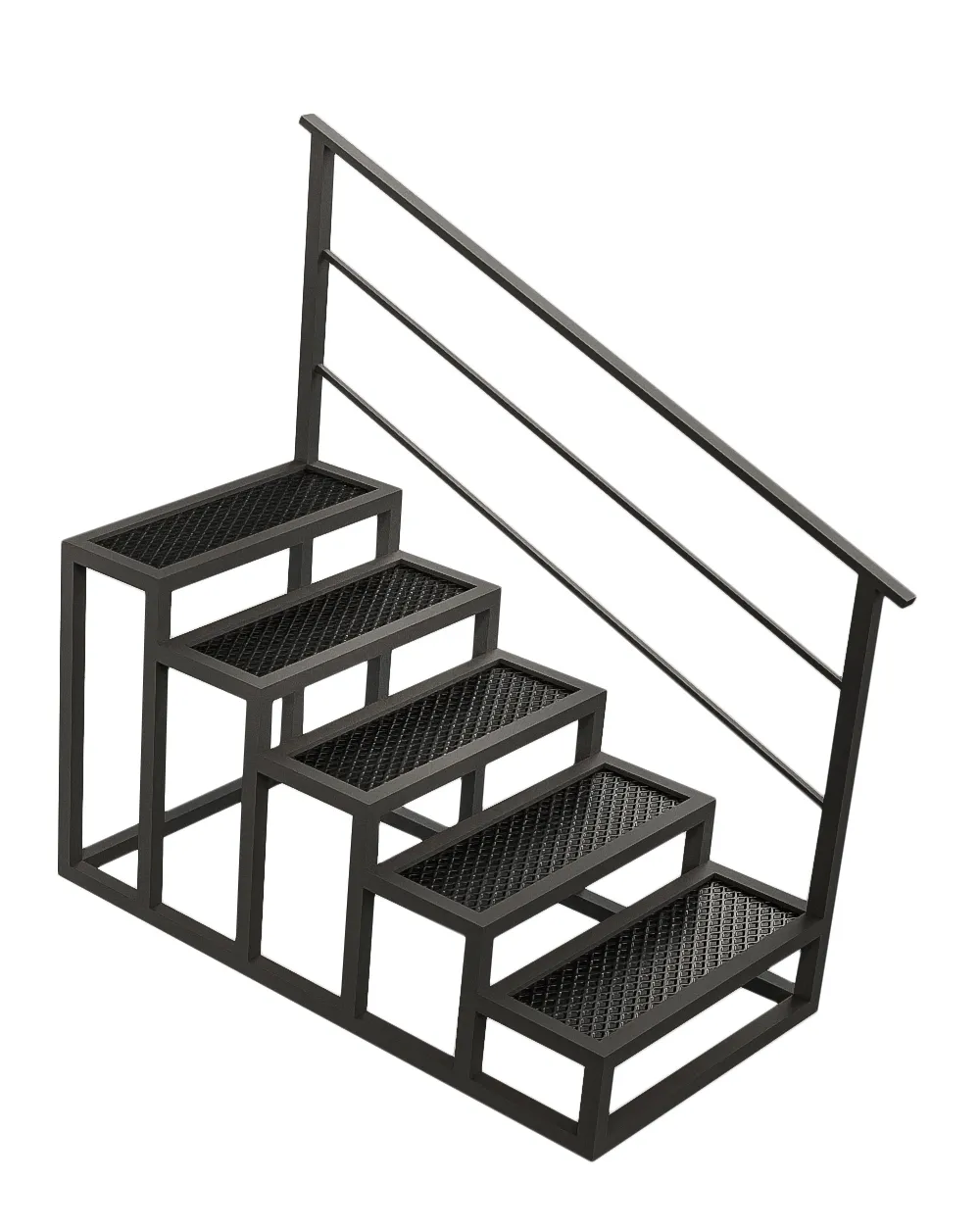 Лестница из металлокаркаса с площадкой и поручнем