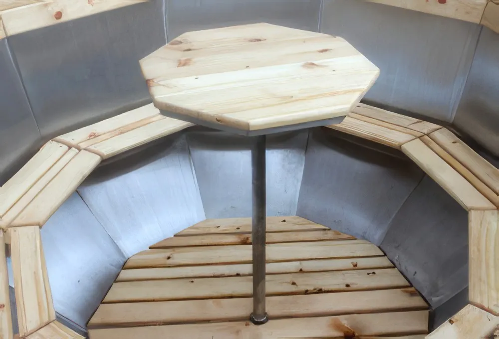 Банный чан из нержавеющей стали Ø-2000 на подставке с приварной печью с водяной рубашкой