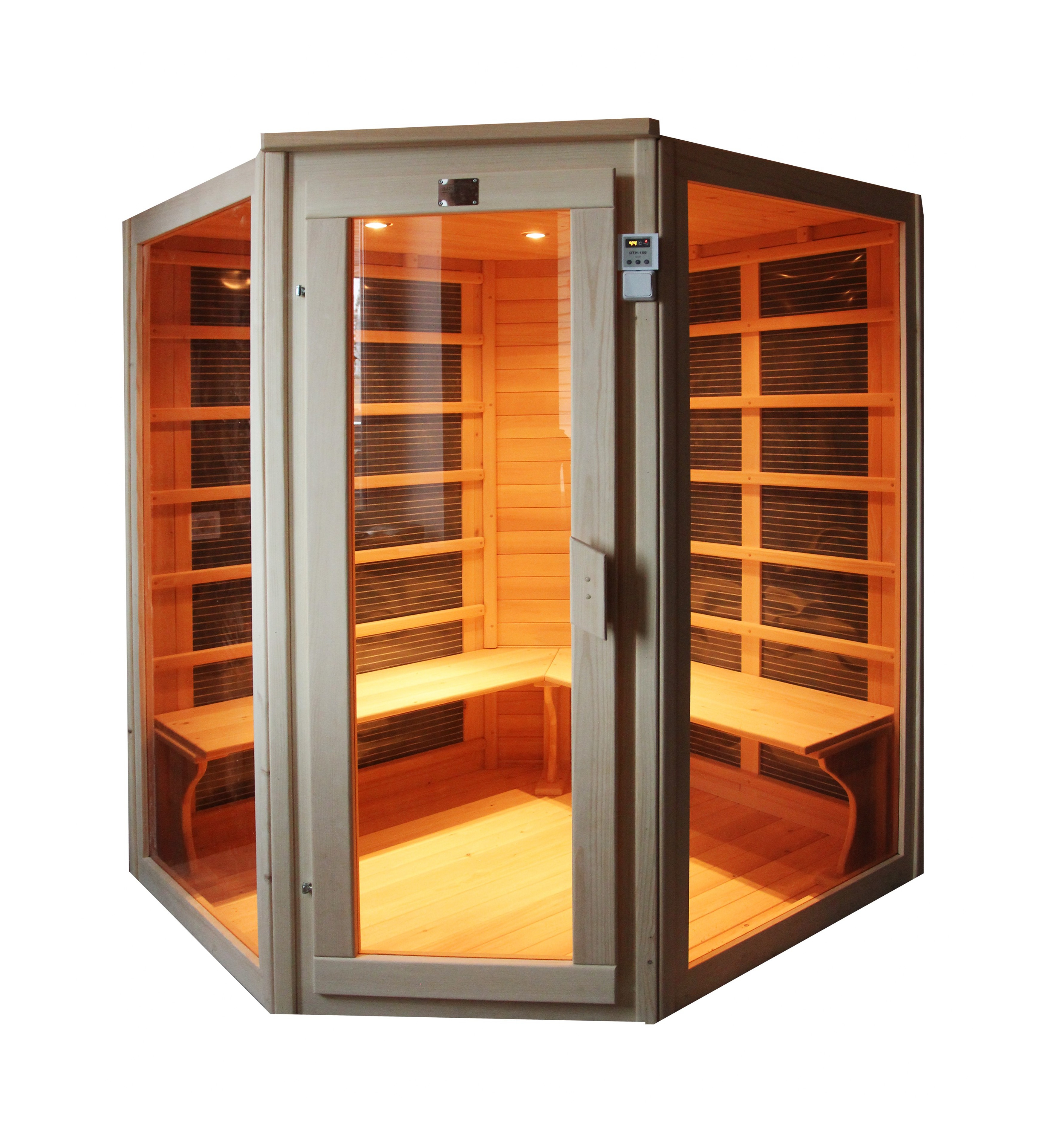 Пятиместная (семиместная) угловая инфракрасная сауна кабина из кедра с карбоновыми излучателями