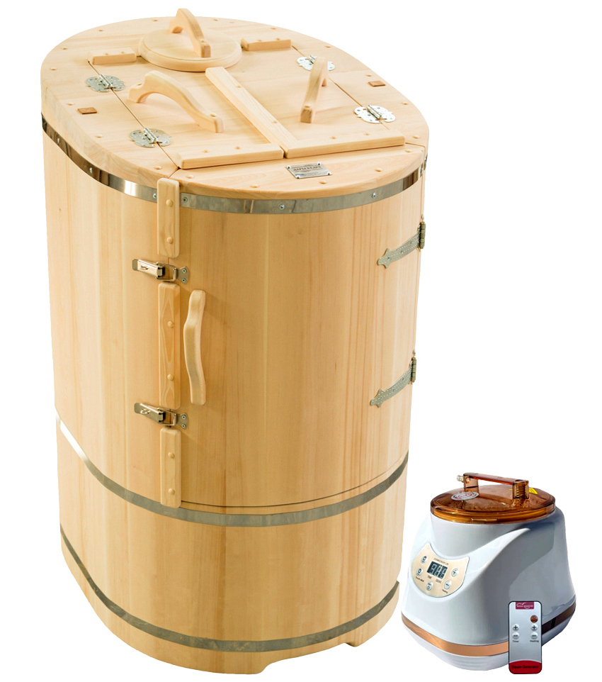 • Готовый комплект «Домашний»: кедровая бочка с парогенератором + био-защита изнутри и снаружи Готовый комплект - это полностью укомплектованный набор с фитобочкой для процедур парения. Круглая модель наиболее компактна и мобильна. Толщина стенок составляет 25 мм. Фитобочка оборудована откидными створками, дверцей и отверстием для головы. Верхний скос изделия делает положение головы более комфортным и улучшает обзор. Во время парения человек сидит внутри кедровой бочки, а голова находится снаружи. Благодаря этому исключается возможность перегрева. Подлокотники из кедра, встроенные ручки на створках и двери делают эксплуатацию более удобной. Парение в фитобочке благотворно влияет на организм в целом: повышается иммунитет, выводятся шлаки и токсины, улучшается работа органов тела и состояние кожи.