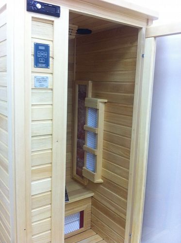 Компактно достаточно разместилась угловая сауна у нас в ванной комнате, брали одноместную с карбоновыми нагревателями. Греет по ощущениям не сильно жарко, но нам такую и надо было, чтобы и дети, и пожилые родители смогли принимать процедуры. Щадящая сауна - то, что нужно! Погреться после зимних интенсивных прогулок с чашкой ароматного чая - просто супер! Нам всем нравится. Рекомендую!